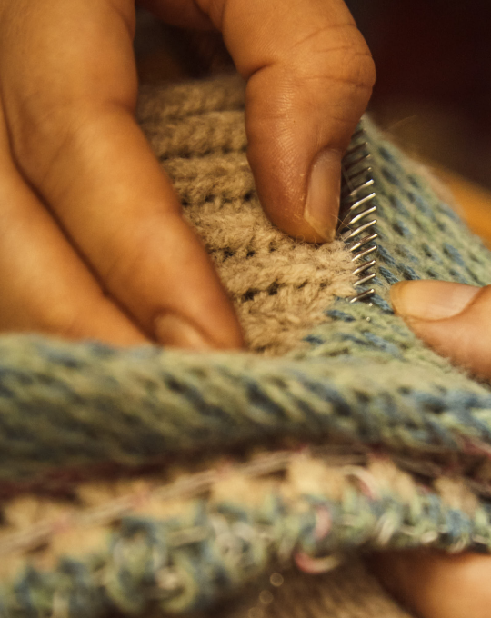 Behind our garments are skilled artisans and yarn manufacturers. Each piece tells their story. We launched L'Envers to create an ethical, sustainable brand that celebrates them. From pattern sketching to dyeing, everything is exclusively designed for L'Envers with carefully selected yarns. We've built strong relationships with local workshops, ensuring good working conditions, minimal impact, and lasting quality.