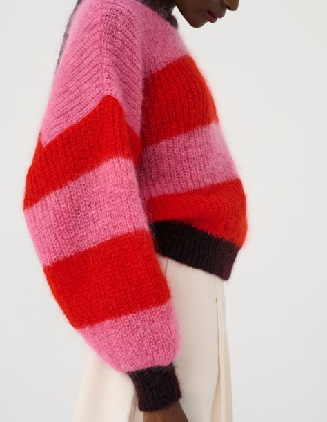 Ensemble, on célèbre une mode joyeuse, hors des tendances, incarnée et respectueuse des artisans qui la façonnent. On s'est beaucoup amusées à imaginer cette collection capsule, tel un trait d'union entre nos deux univers et l'occasion pour Lucas du Tertre de renouer avec les mailles jacquard de ses débuts.