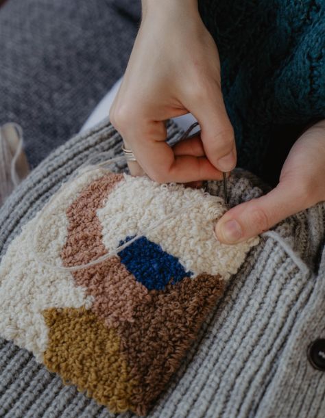 CLAUDE se met à l'heure de l'art avec une pochette étonnante réalisée par Julie : avec des restes de laine de l'atelier, elle a créé un motif unique qui ornera nos cardigans CLAUDE prune et gris clair. Soigneusement découpée à la main, une à une, chaque poche suivra le même dessin avec les infimes variations qu'implique la création manuelle, pour notre plus grand plaisir.