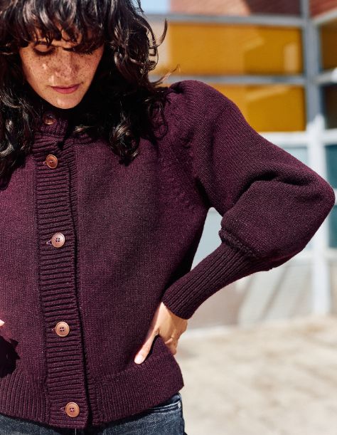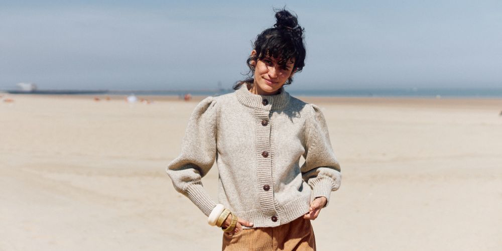 Des manches gigot XXL, de longs poignets serrés, une boutonnière et un col épais, une silhouette résolument féminine, en 100% pure laine espagnole mérinos , et la FRANÇOISE gilet est née !