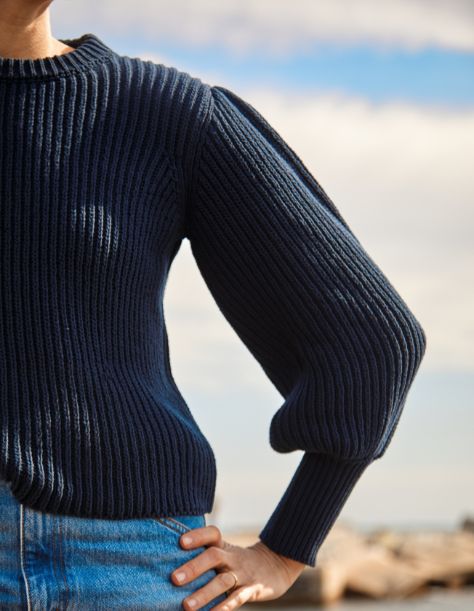 Julie et Madeleine frappent encore ! Deuxième collaboration entre les deux amies de longue date, le RAPHAELLE pull à manches bouffantes est une pure merveille et mêle sans effort l'ADN des deux marques : le tricotage artisanal de L'Envers et le style unique de SIXSŒURS.