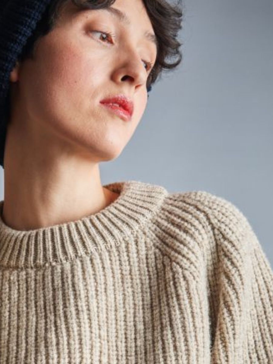 Le pull raglan AGNÈS en 100% laine mérinos a une coupe ajustée, nous vous recommandons donc de commander votre taille habituelle. Si vous l'aimez plus ample, prenez une taille au-dessus en sachant que les tricots se desserrent généralement légèrement une fois portés. La tolérance pour la taille indiquée sur le guide des tailles peut être de +/-2cm ou +/-1in.