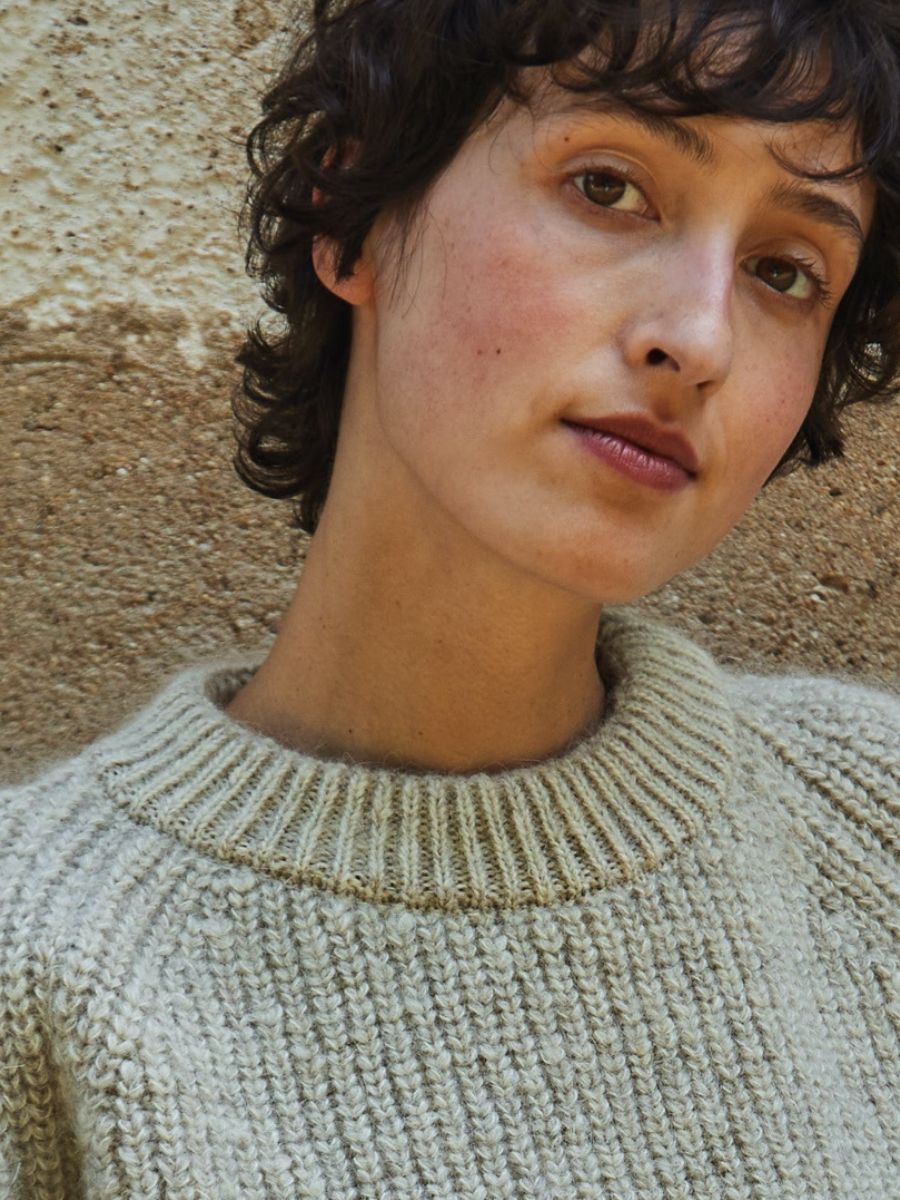 Le raglan pull d'AGNÈS en mérinos- laine mohair a une coupe ajustée, il est donc recommandé de commander votre taille habituelle. Si vous l'aimez plus ample, prenez une taille au-dessus en sachant que les tricots se desserrent généralement légèrement une fois portés. La tolérance pour la taille indiquée sur le guide des tailles peut être de +/-2cm ou +/-1in.