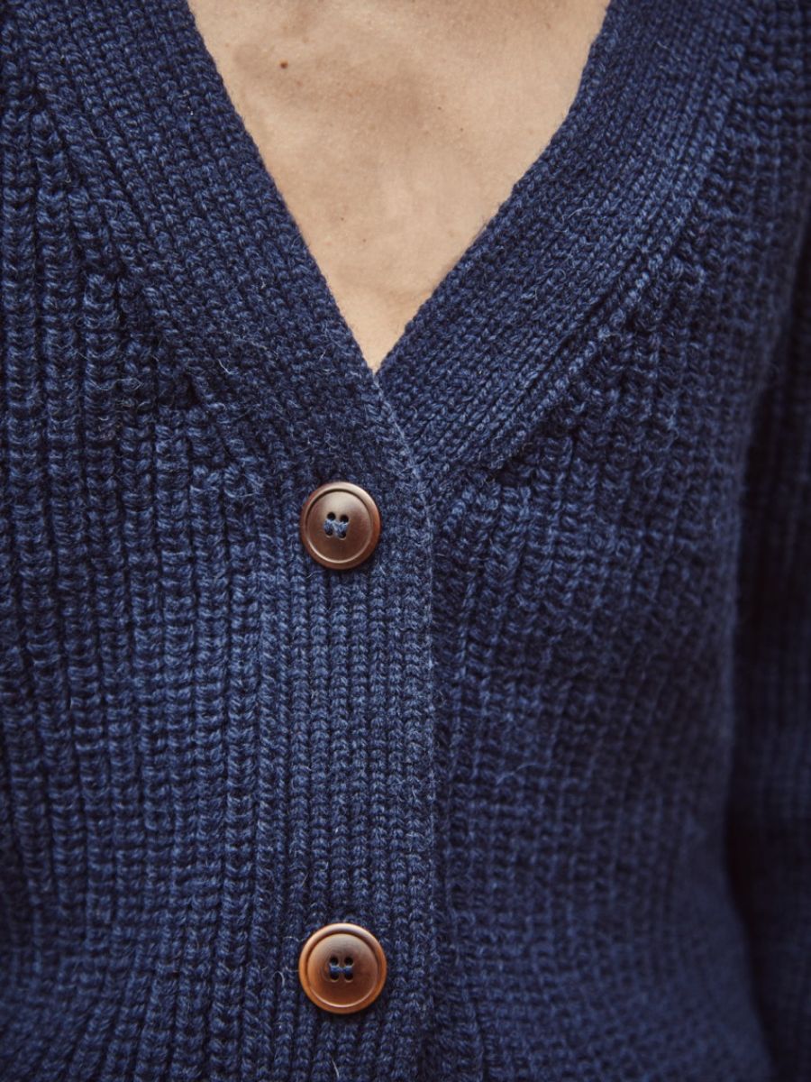 ANNA Gilet à col V en laine mérinos - Marine
