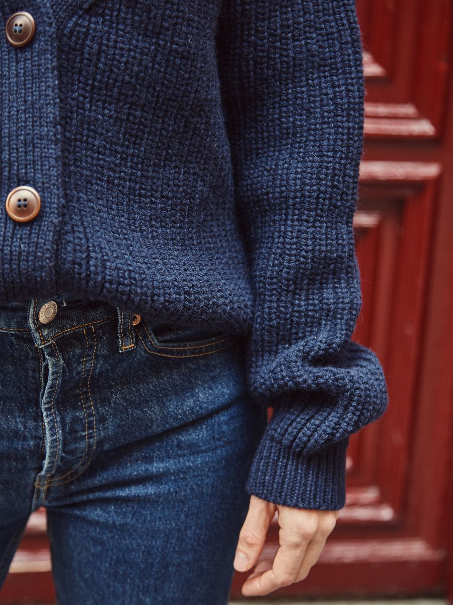 Le modèle de gilet ANNA a une forme ajustée, nous vous recommandons donc de prendre votre taille habituelle. Si vous l'aimez plus oversize, prenez une taille au-dessus en sachant que les tricots se desserrent légèrement une fois portés. La tolérance pour la taille indiquée sur le guide des tailles peut être de +/-2cm ou +/-1in.