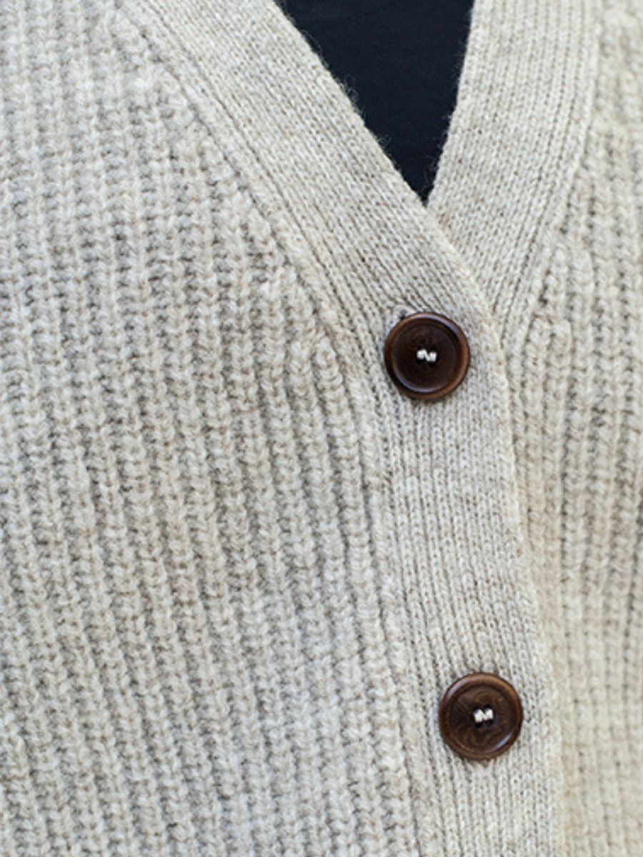 ANNA Cardigan col V en Laine Mérinos - Beige (Livraison avant Noël)