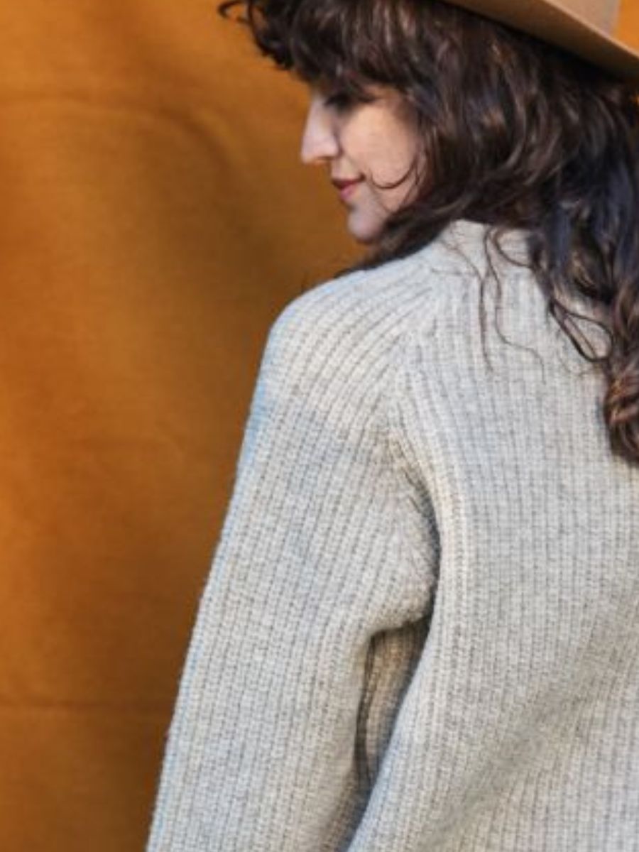 Le modèle de gilet ANNA a une forme ajustée, nous vous recommandons donc de prendre votre taille habituelle. Si vous l'aimez plus oversize, prenez une taille au-dessus en sachant que les tricots se desserrent légèrement une fois portés. La tolérance pour la taille indiquée sur le guide des tailles peut être de +/-2cm ou +/-1in.