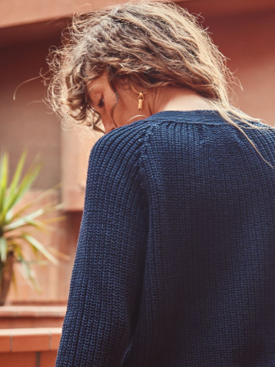 ANNA Gilet à col V en coton biologique - Bleu marine