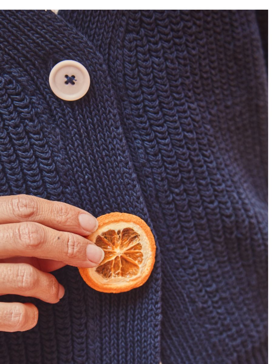 Le modèle de gilet ANNA a une forme ajustée, nous vous recommandons donc de prendre votre taille habituelle. Si vous l'aimez plus oversize, prenez une taille au-dessus en sachant que les tricots se desserrent légèrement une fois portés. La tolérance pour la taille indiquée sur le guide des tailles peut être de +/-2cm ou +/-1in.