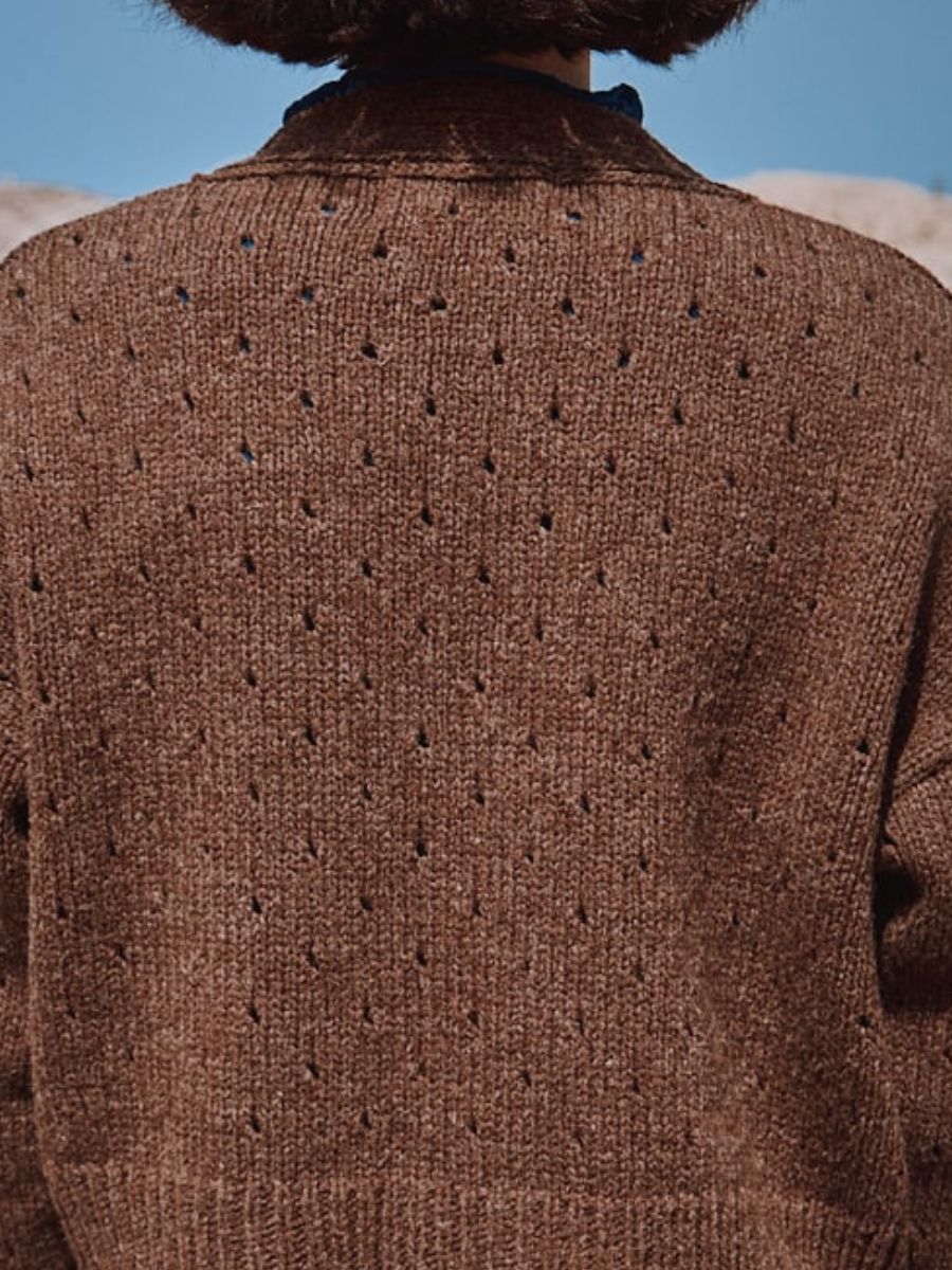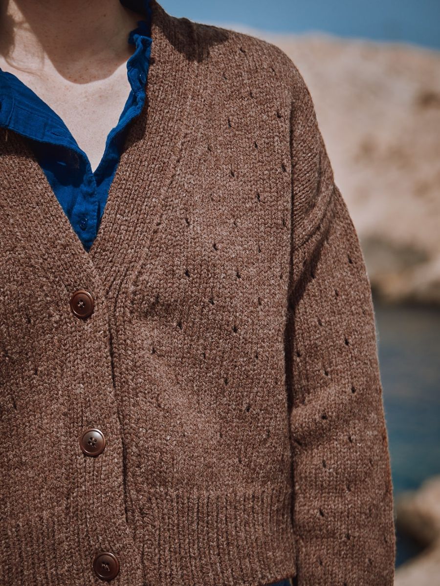 KATRINA Cardigan à maille ajourée en laine mérinos - Chocolate