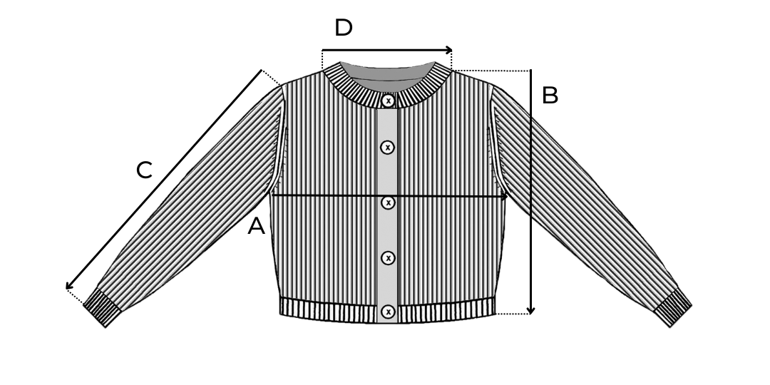 Le cardigan à col rond CHARLOTTE en laine a une forme ajustée, nous vous recommandons donc de prendre votre taille habituelle. Si vous l'aimez plus oversize, prenez une taille au-dessus en sachant que les tricots se desserrent généralement légèrement une fois portés. La tolérance pour la taille indiquée sur le guide des tailles peut être de +/-2cm ou +/-1in.
