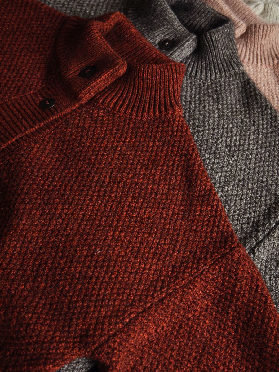 GEORGE Veste cardigan à col montant en laine yack-mérinos - Brique