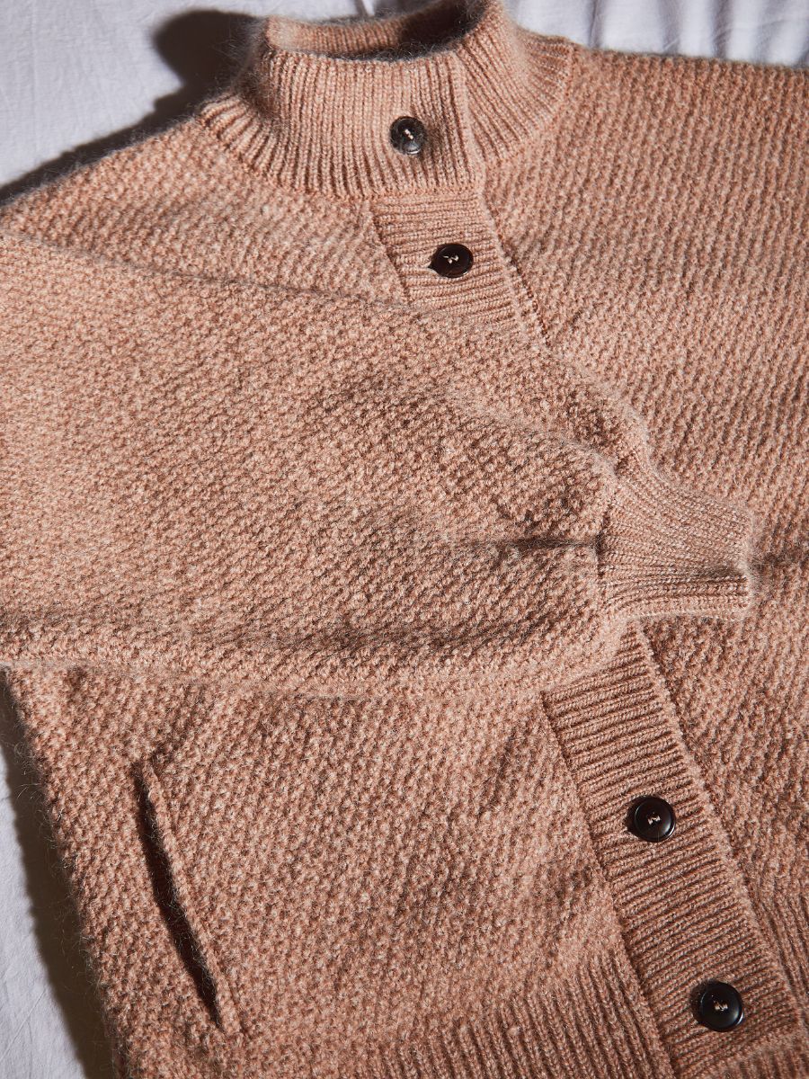 GEORGE Veste cardigan à col montant en laine mérinos-mohair - Rose pâle