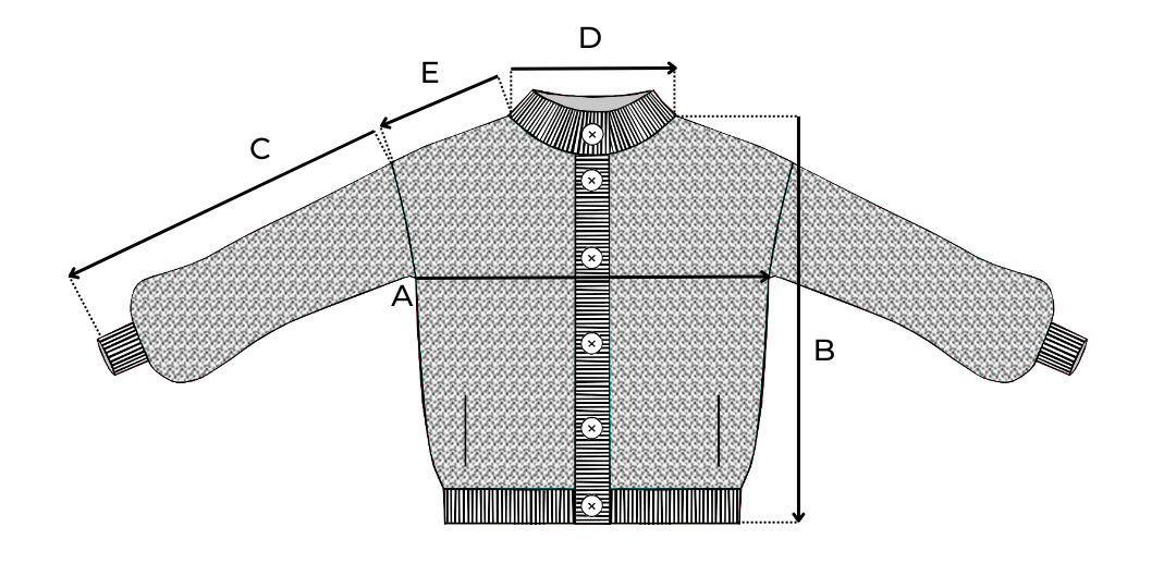 La veste en maille GEORGE en laine a une coupe oversize, nous recommandons donc de commander votre taille habituelle pour obtenir l'effet oversize. Si vous la préférez un peu plus près du corps, commandez une taille en dessous, sachant que les tricots se desserrent généralement légèrement une fois portés. La tolérance pour la taille indiquée sur le guide des tailles peut être de +/-2cm ou +/-1in.