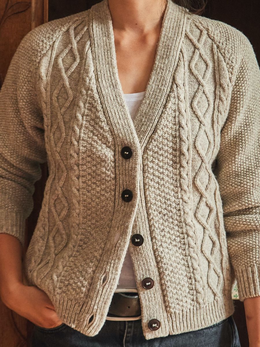 ANNIE Cardigan torsadé à col en V en laine mérinos - Beige