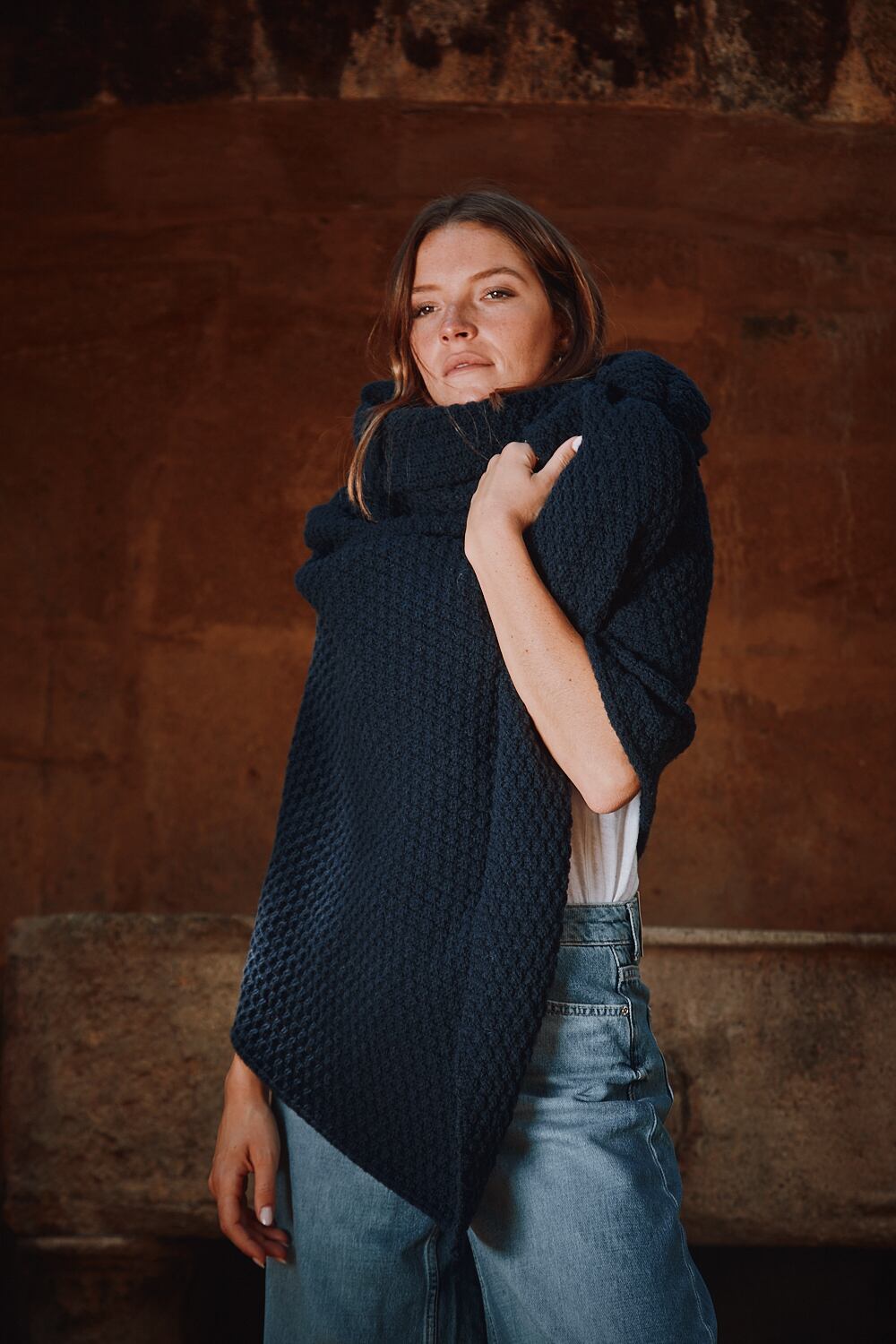ISABELLE Plaid en laine mérinos - Bleu marine