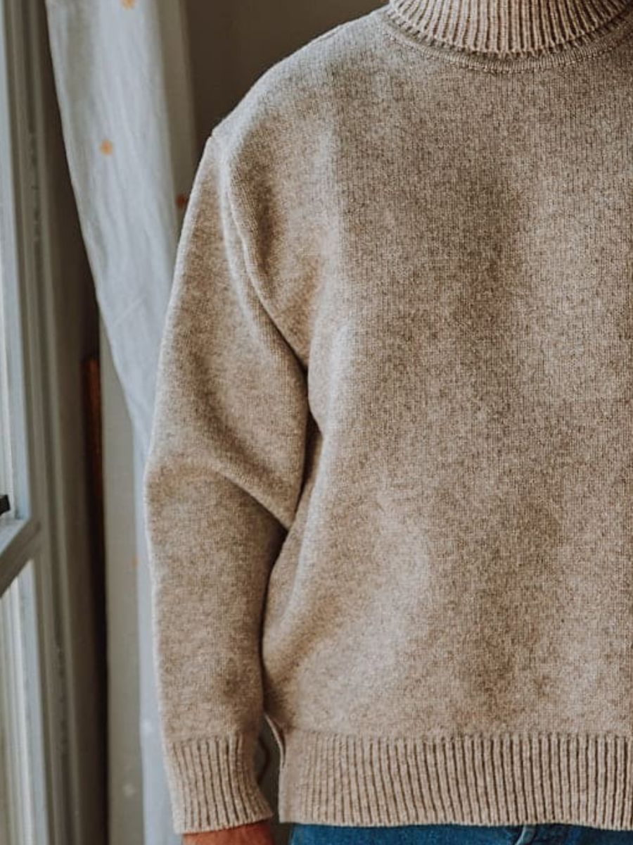 JACQUES Pull à col roulé pour hommes en laine mérinos - Beige