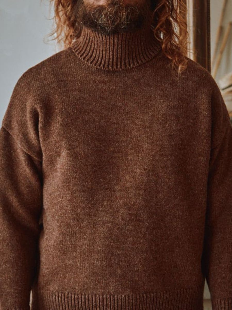 JACQUES Pull à col roulé pour hommes en laine mérinos - Chocolat