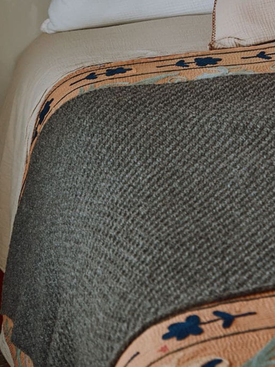 ISABELLE Plaid en laine mérinos - Gris cendré