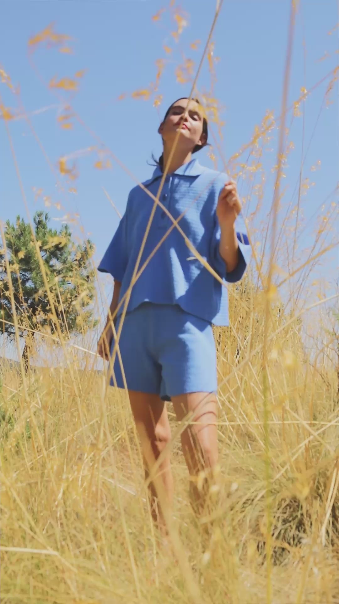 LILI Polo oversize en coton bio - Bleu cyan