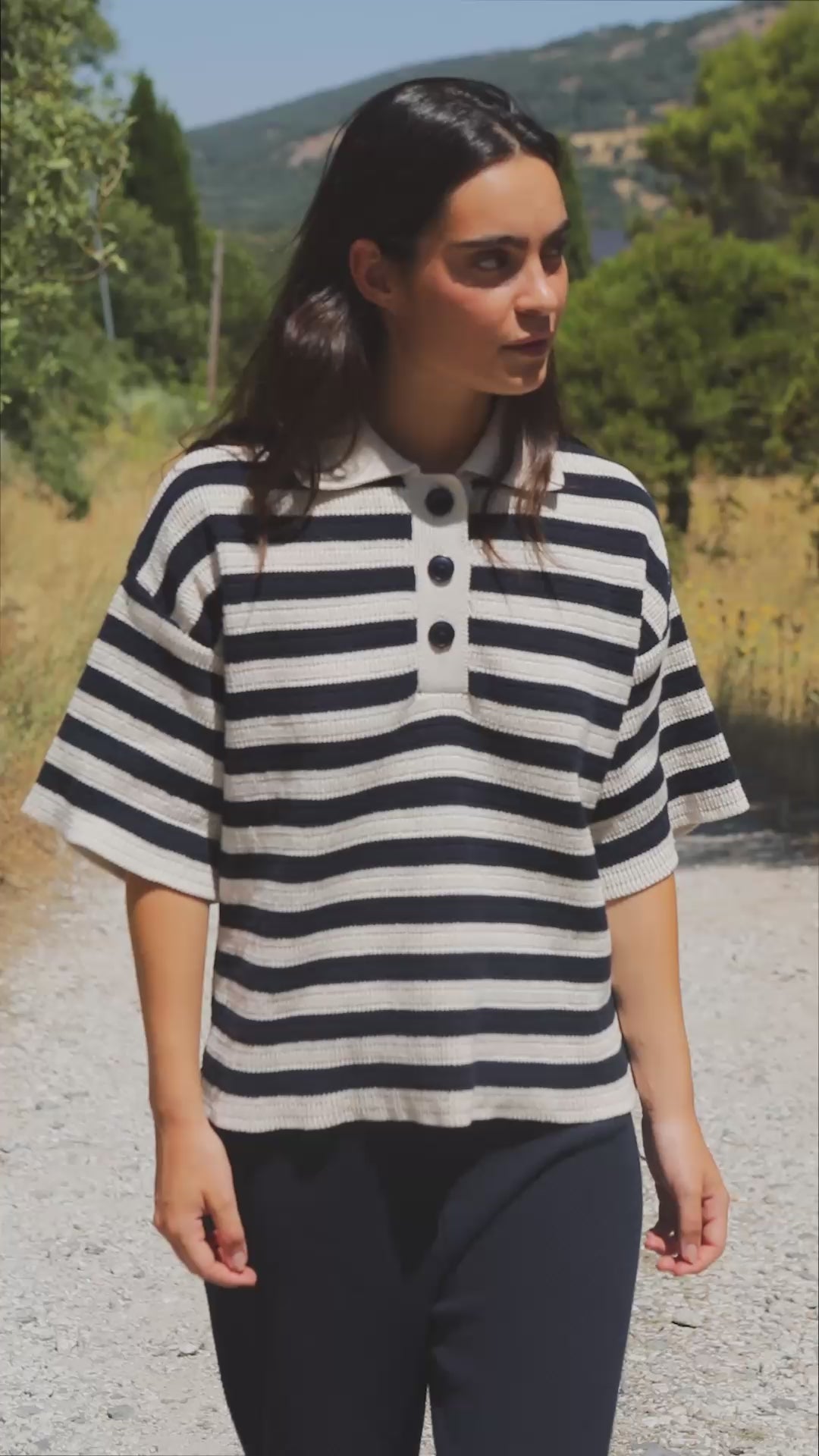 LILI Polo oversize en coton bio - Rayures bleu marine et écru