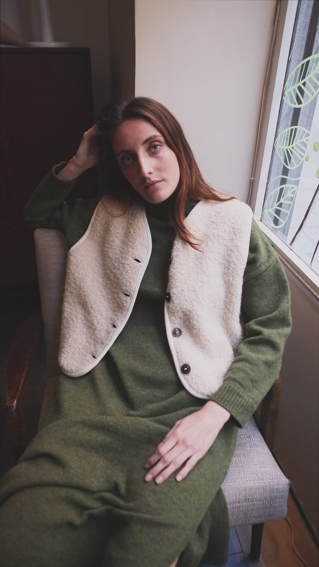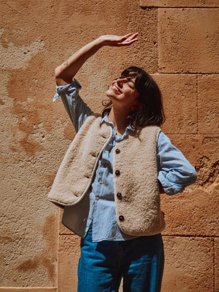 LUCE Gilet de berger en alpaga bouclé - Beige clair