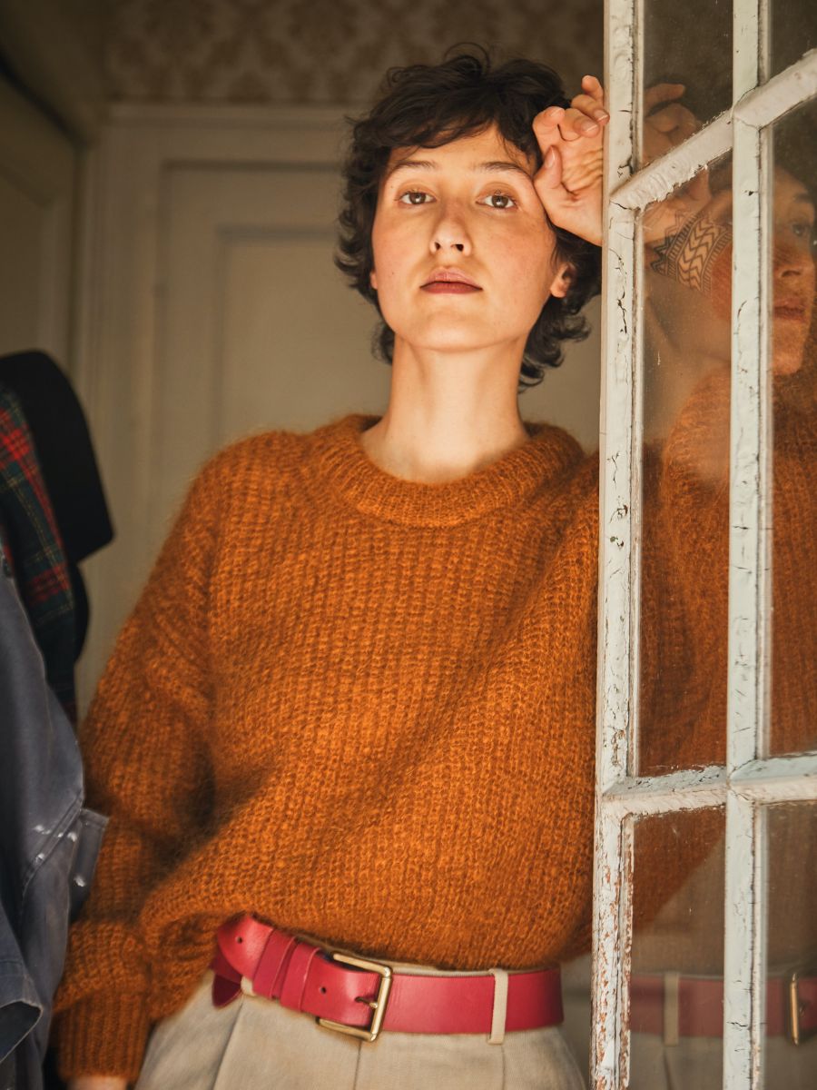 Le pull en mohair LUCIE a une coupe oversize, nous vous recommandons donc de commander votre taille habituelle pour obtenir l'effet oversize. Si vous le voulez un peu plus près du corps, commandez la taille inférieure en sachant que les tricots se desserrent légèrement une fois portés. La tolérance pour la taille indiquée sur le guide des tailles peut être de +/-2cm ou +/-1in.