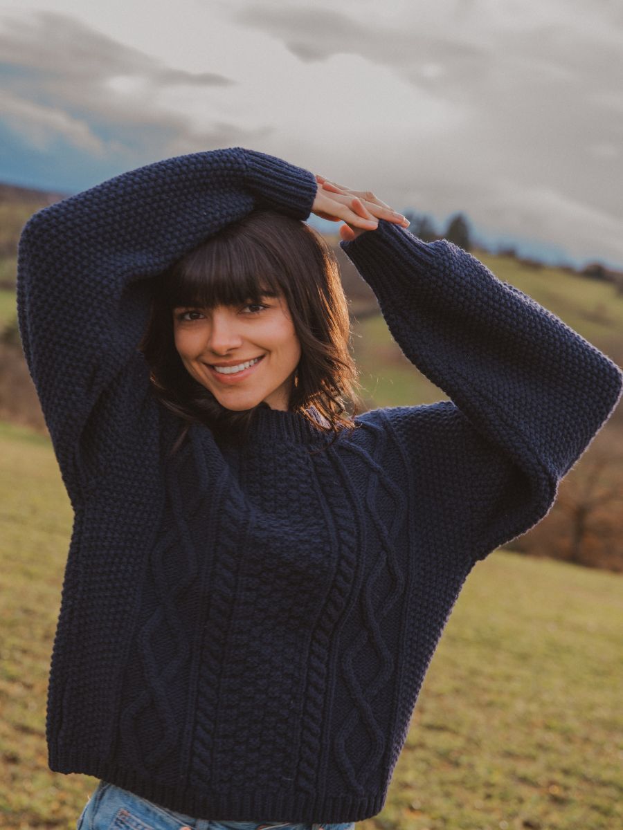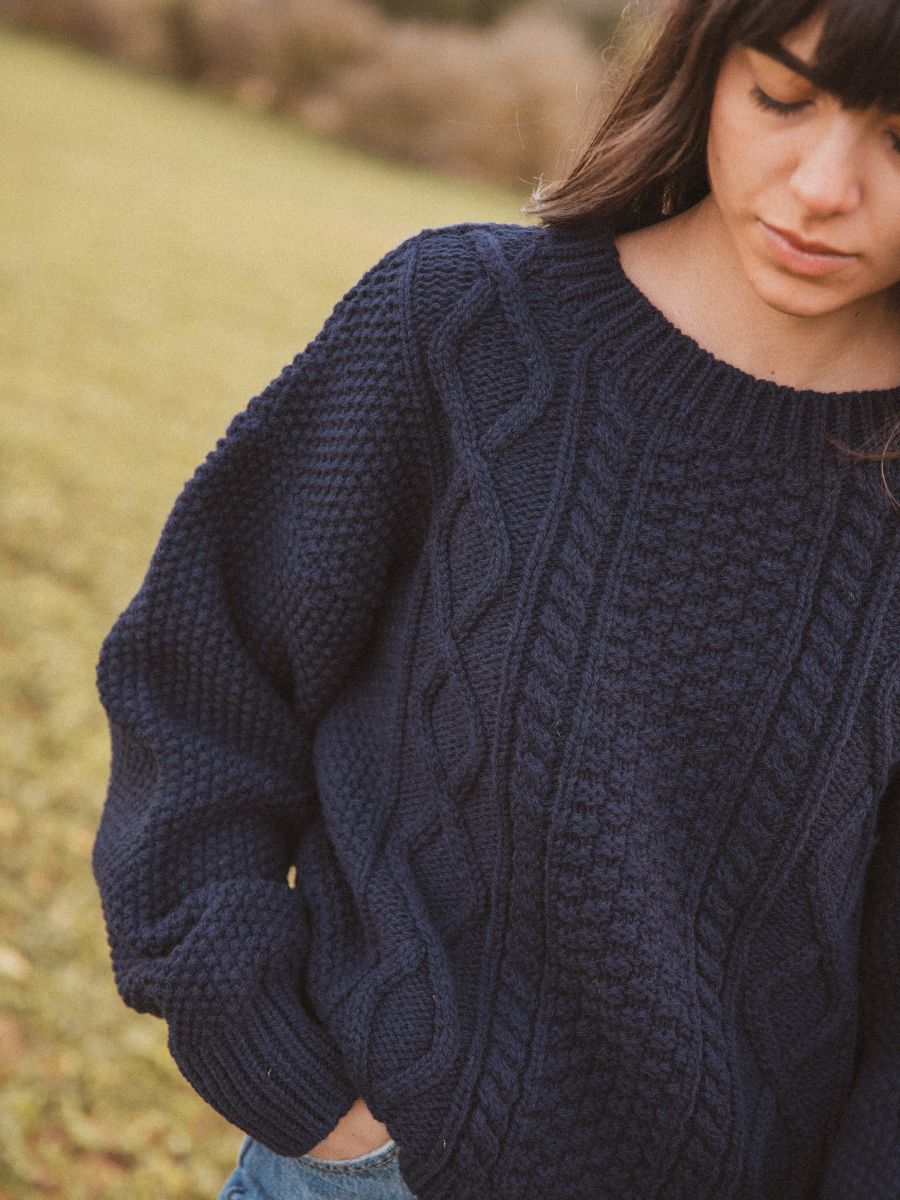 PAOLA Pull irlandais en laine mérinos - Bleu marine