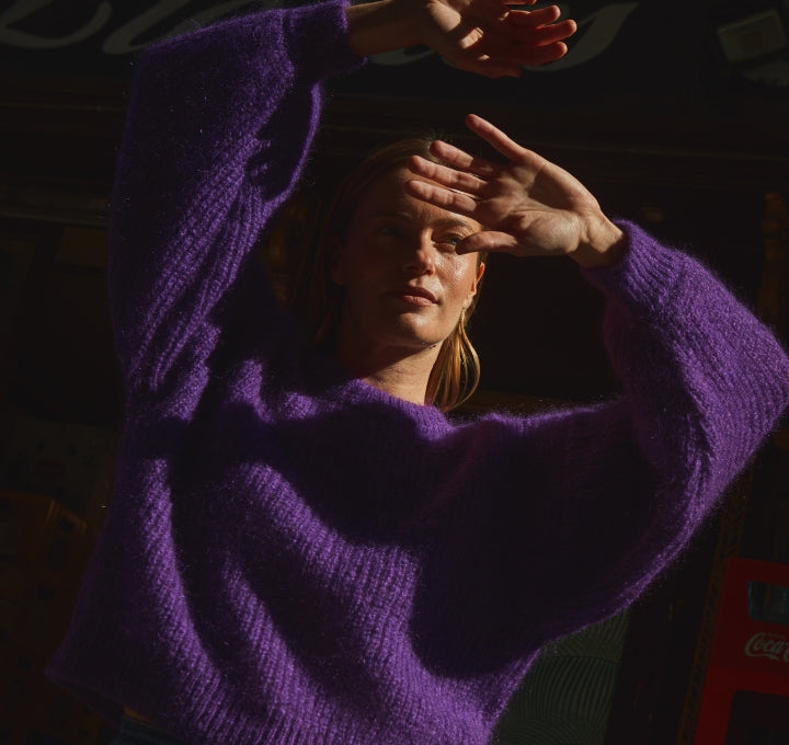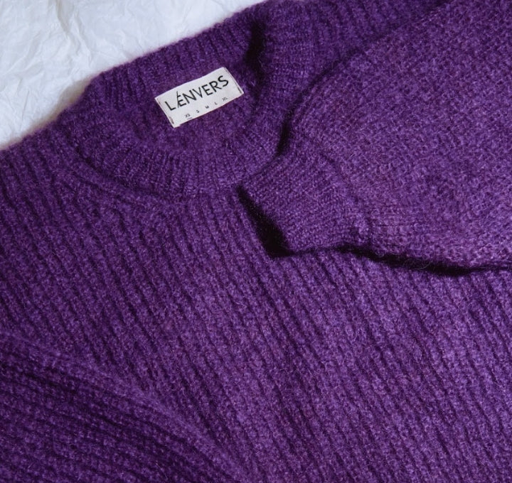 LUCIE Pull à manches chauve-souris en laine mohair - Violet