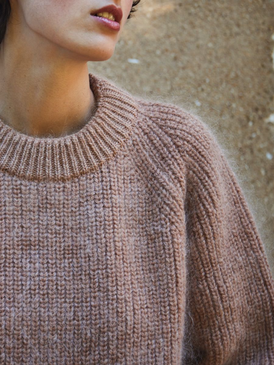 The AGNÈS raglan sweater in merino-mohair wool has a snug fit, so we recommend ordering your usual size. If you like it looser, order a size up knowing that knits usually loosen slightly once worn. The tolerance for the size indicated on the size guide can be +/-2cm or +/-1in.