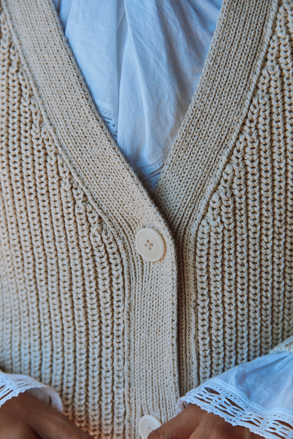 ANNA V-Neck Cardigan in Organic Cotton - Off-White