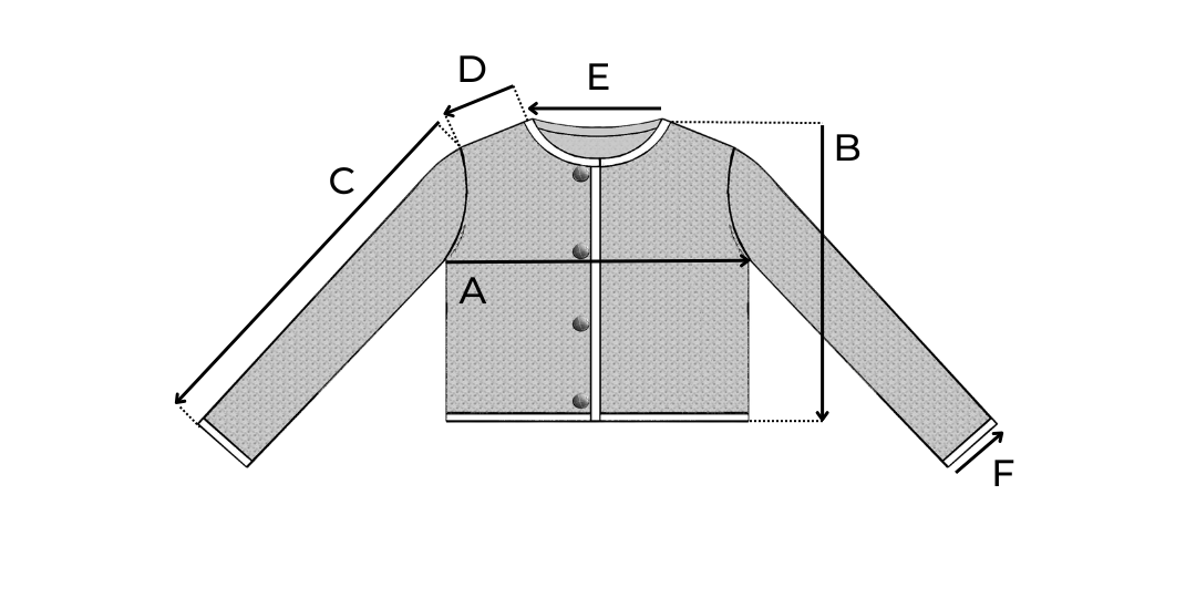 The EMILIE short jacket in 100% organic cotton has a regular fit, so we recommend ordering your usual size. If you like it more oversized, order a size up knowing that knits usually loosen slightly once worn. The tolerance for the size indicated on the size guide can be +/-2cm or +/-1in. Last update : August 2025.