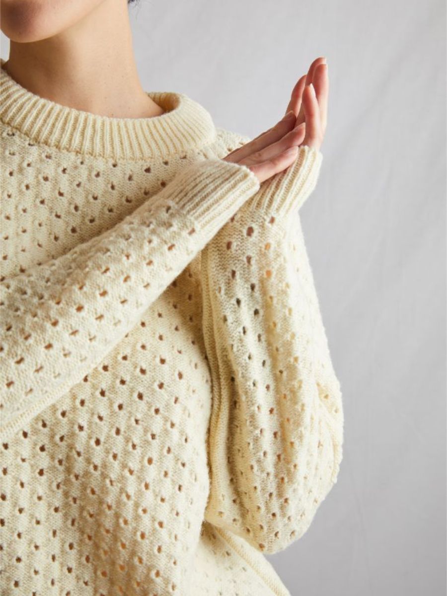 FLORENCE Open-Weave Sweater in Merino Wool - Off-White
