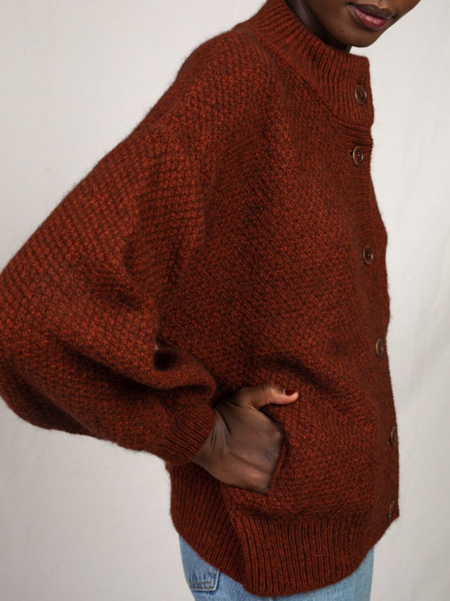 GEORGE High-Neck Cardigan Jacket in Yak-Merino Wool - Rust Red