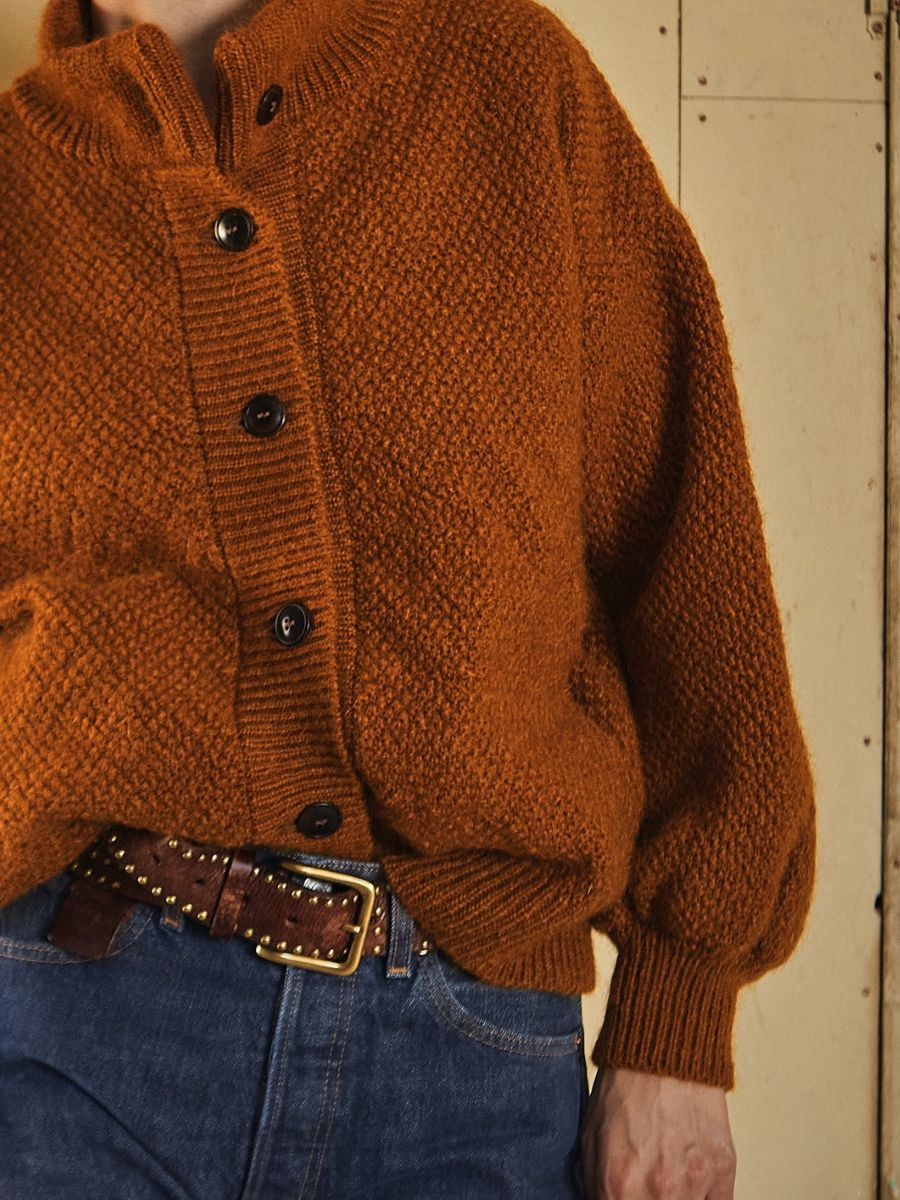 GEORGE High-Neck Cardigan Jacket in Merino-Mohair Wool - Amber (Delivered by Xmas)