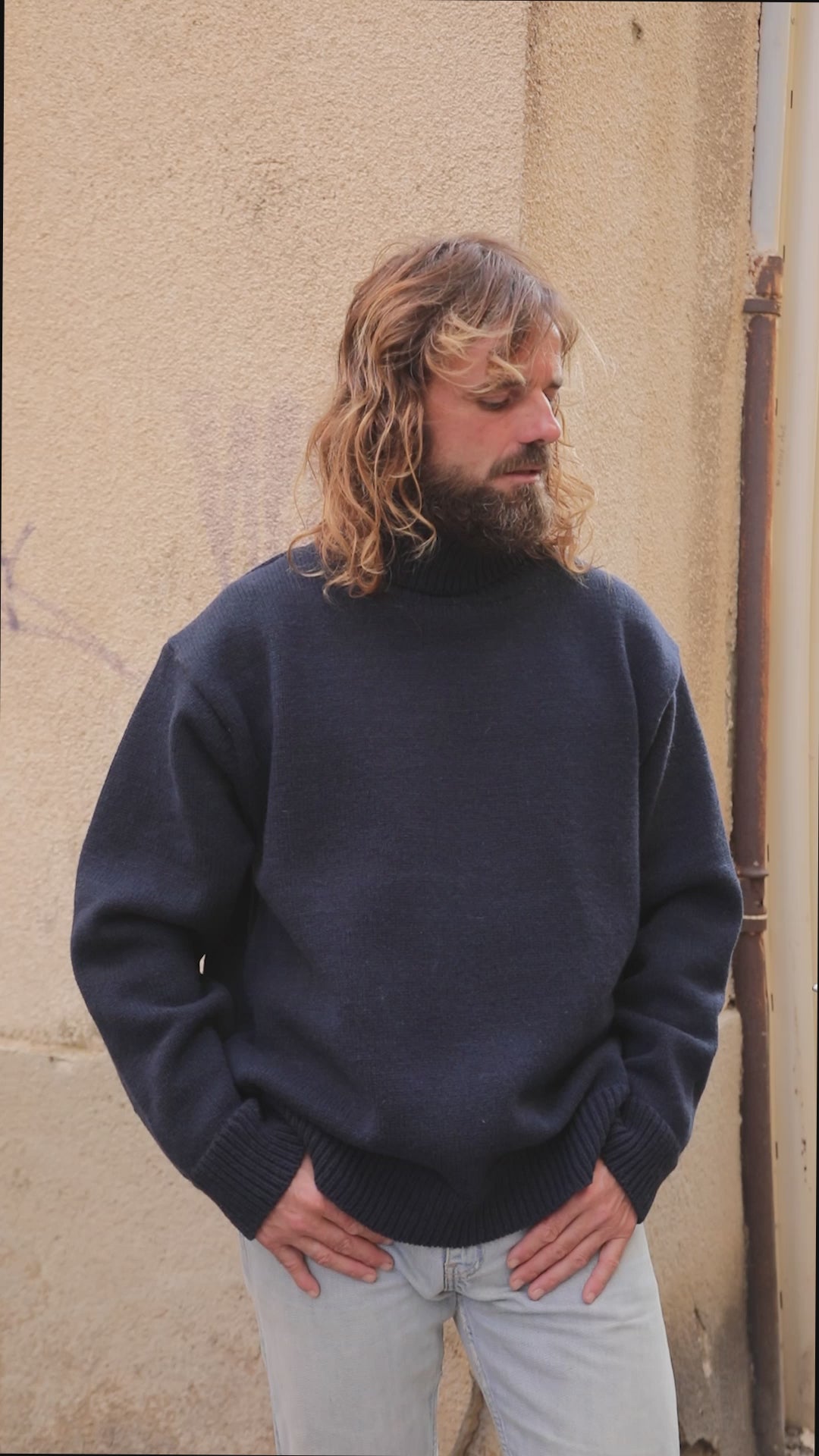 JACQUES Men Turtleneck Sweater in Merino Wool - Navy