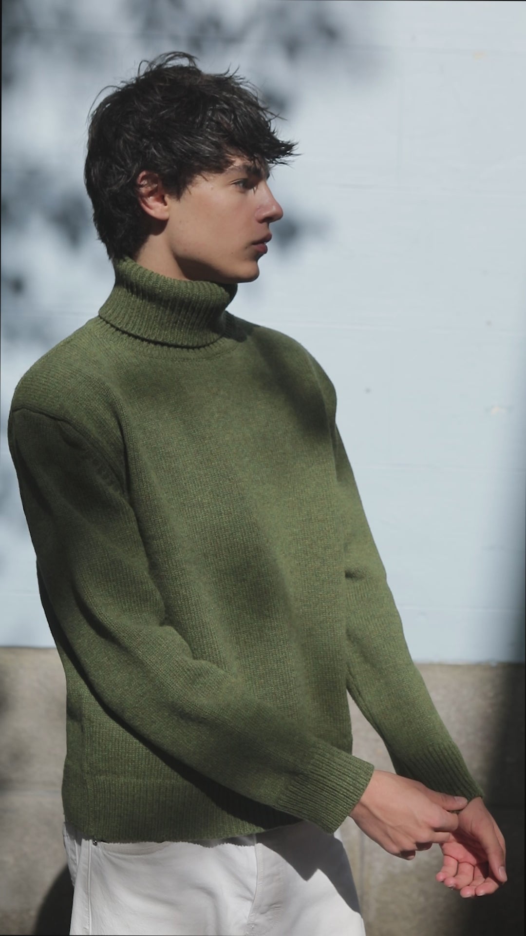 JACQUES Men Turtleneck Sweater in Merino Wool - Olive Green