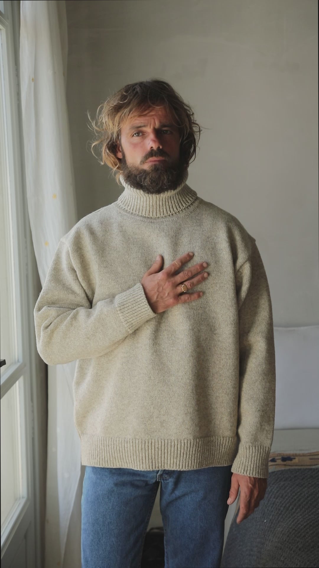 The JACQUES Turtleneck Sweater in 100% merino wool has a regular fit, so we recommend ordering your usual size. If you like it more oversized, order a size up knowing that knits usually loosen slightly once worn. The tolerance for the size indicated on the size guide can be +/-2cm or +/-1in.