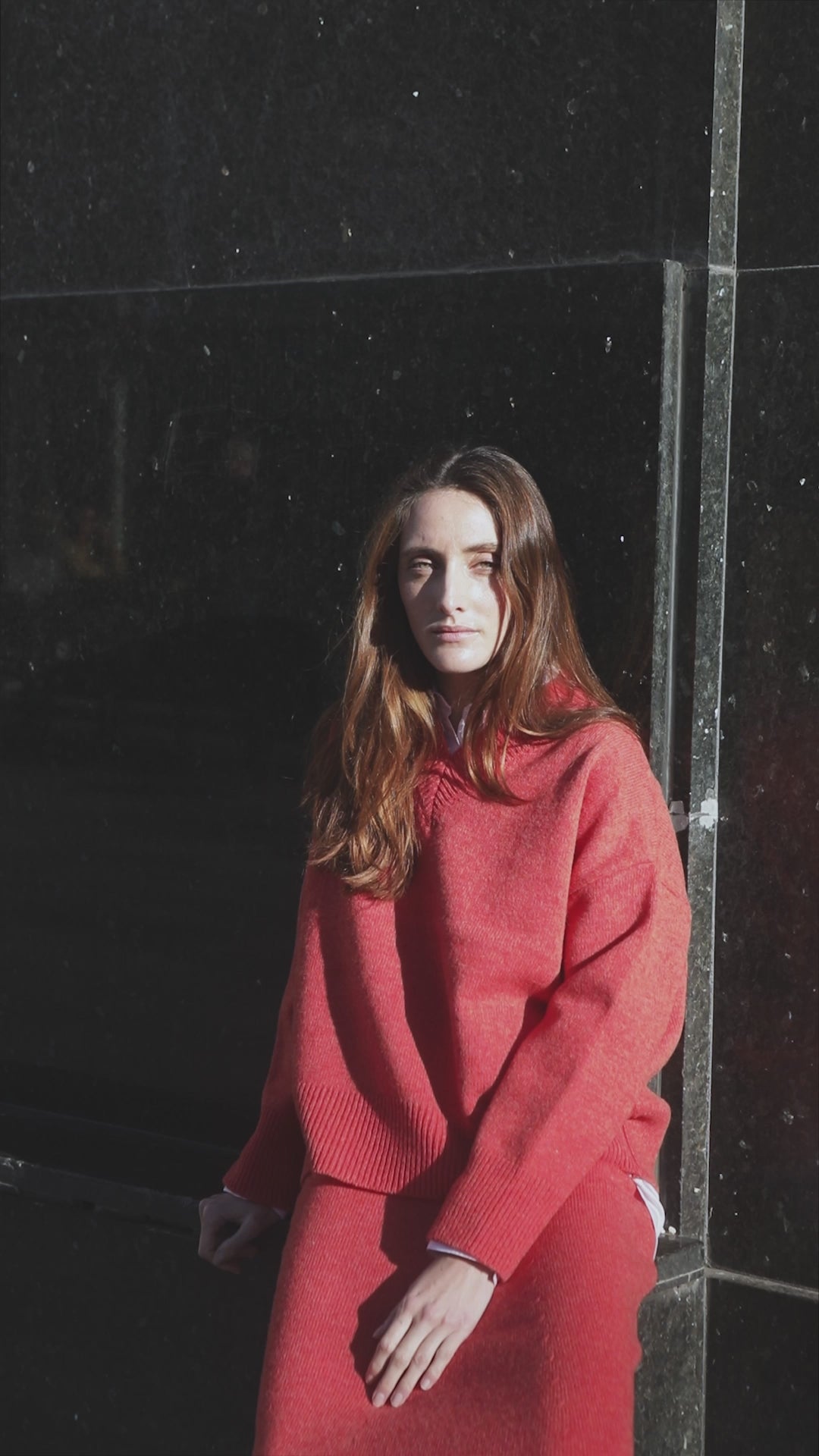LEONTINE V-Neck Sweater in Merino Wool - Coral