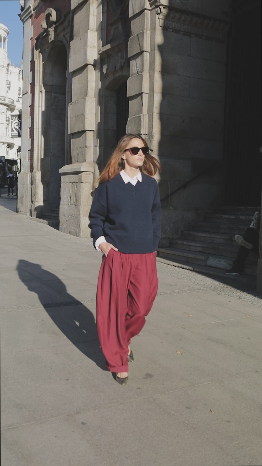 The LEONTINE sweater in 100% merino wool has a regular fit, so we recommend ordering your usual size. If you like it more fitted, take a size down knowing that knits usually loosen slightly once worn. The tolerance for the size indicated on the size guide can be +/-2cm or +/-1in.