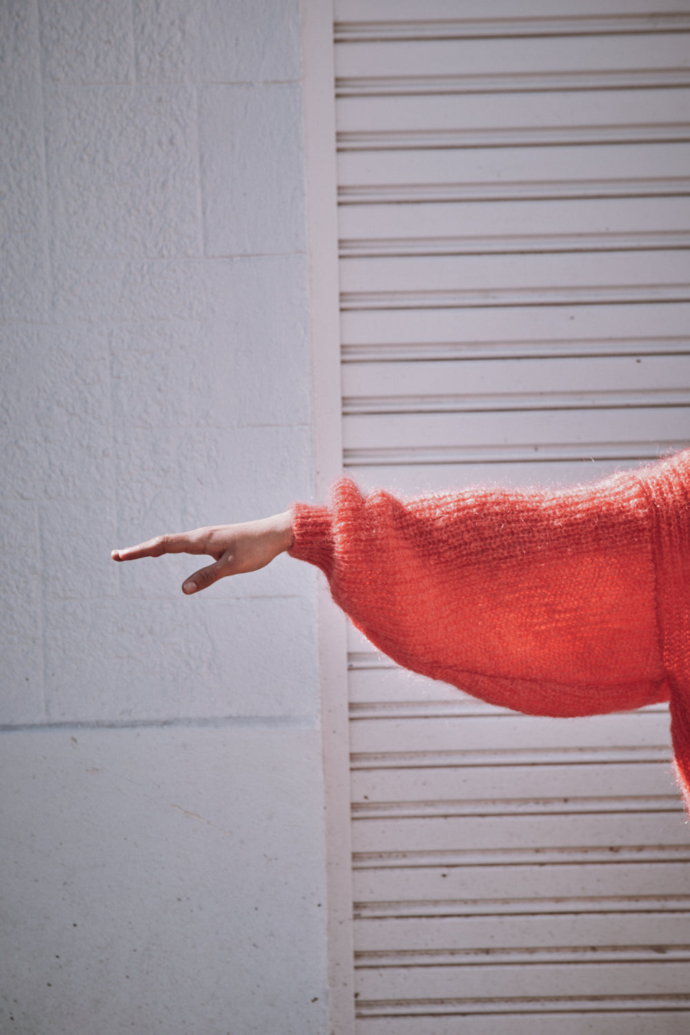 The LUCIE mohair sweater has an oversize fit, so we recommend ordering your usual size to achieve the oversize look. If you want it a bit closer to the body, order the smaller size knowing that knits usually loosen slightly once worn. The tolerance for the size indicated on the size guide can be +/-2cm or +/-1in.