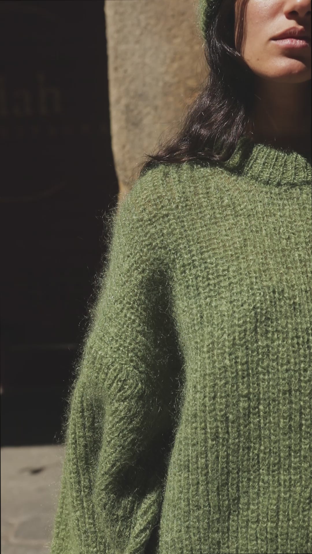 LUCIE Batwing Sweater in Mohair Wool - Olive Green
