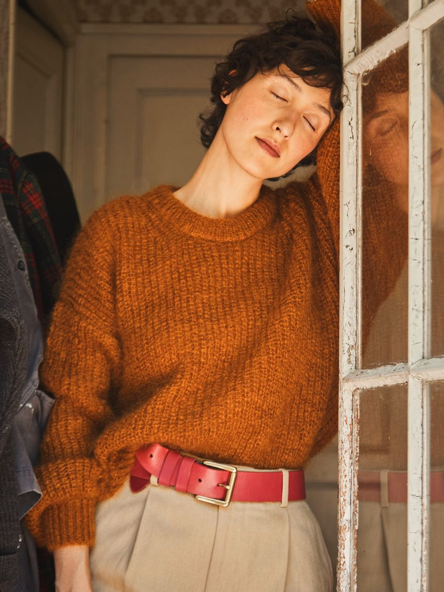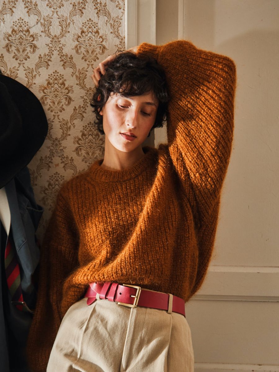 The LUCIE mohair sweater has an oversize fit, so we recommend ordering your usual size to achieve the oversize look. If you want it a bit closer to the body, order the smaller size knowing that knits usually loosen slightly once worn. The tolerance for the size indicated on the size guide can be +/-2cm or +/-1in.