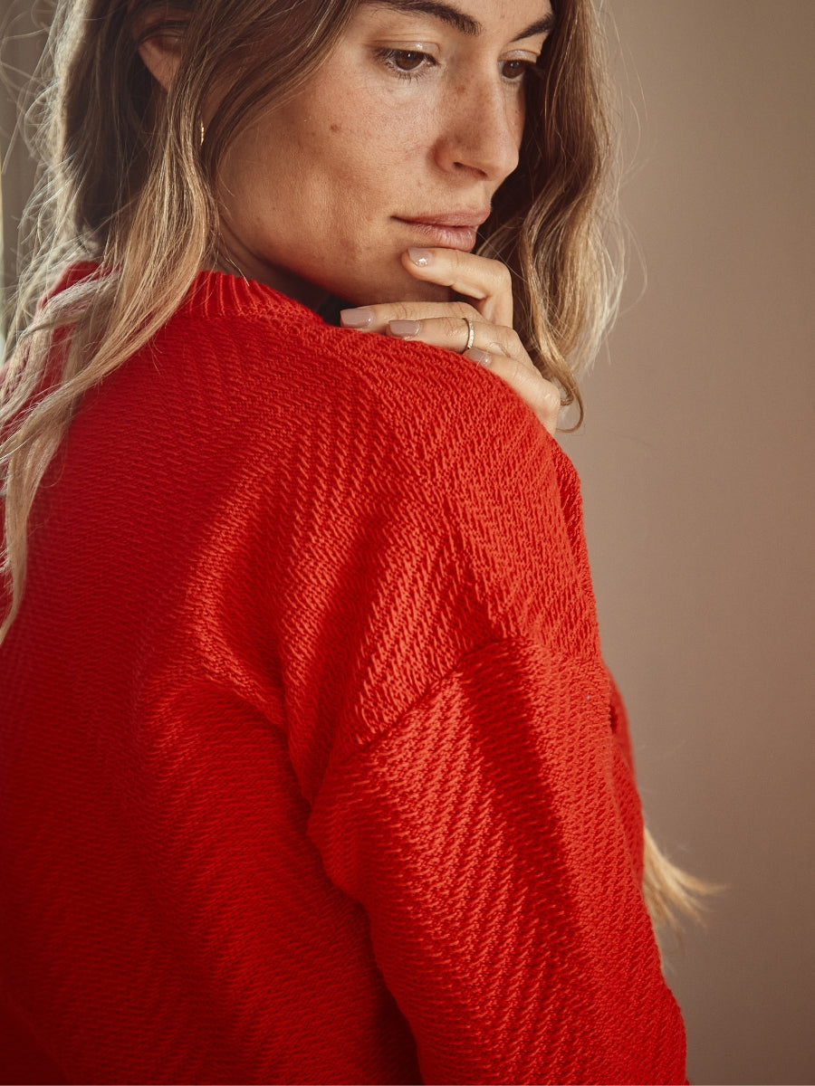 NELLIE Chevron Sweater in Organic Cotton - Red