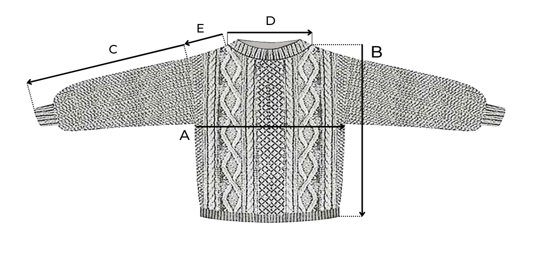 The PAOLA Irish sweater in 100% merino wool has a regular fit, so we recommend ordering your usual size. If you like it more oversized, order a size up knowing that knits usually loosen slightly once worn. The tolerance for the size indicated on the size guide can be +/-2cm or +/-1in.